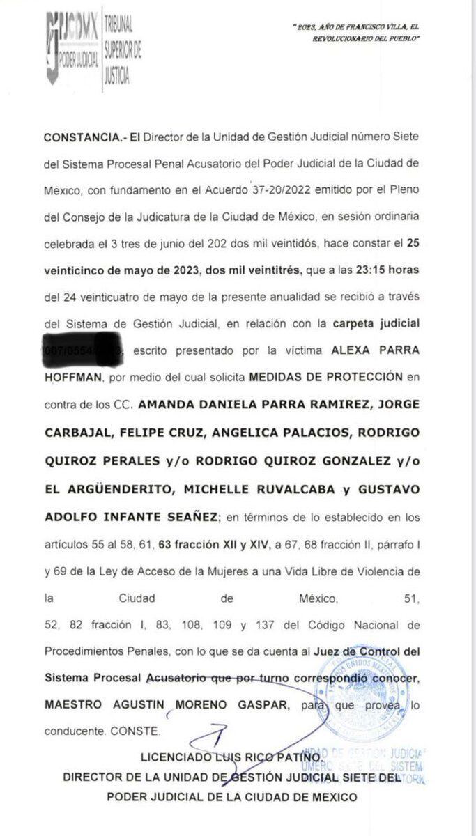 Fue durante la mañana del pasado jueves 25 de mayo cuando comenzó a circular en redes sociales un documento legal a nombre de Alexa Parra. Se trata de una medida de restricción que la joven interpuso en contra de seis comunicadores y su media hermana, Daniela Parra, por todos los comentarios que han lanzado públicamente sobre el caso que sostiene en contra de su padre y agresor, Héctor Parra.