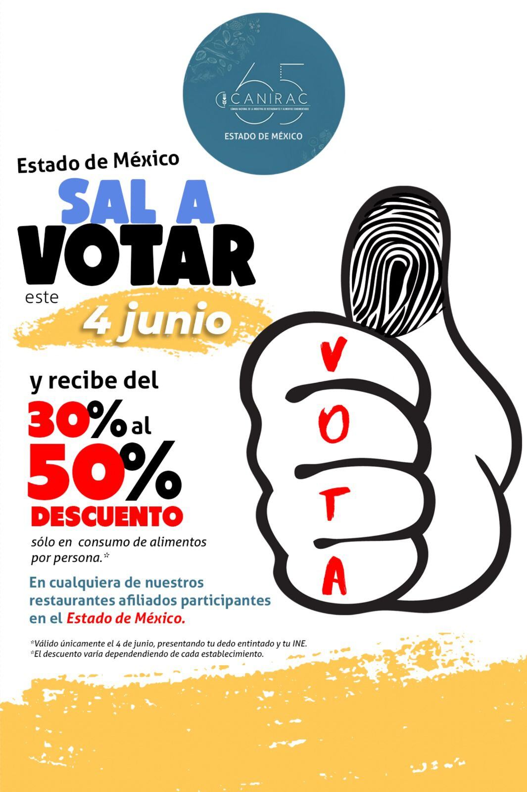 Con el objetivo de combatir el abstencionismo en la elección del próximo 4 de junio por la gubernatura del Estado de México, el Consejo de Cámaras y Asociaciones Empresariales del Estado de México (Concaem) y la Cámara de la Industria Restaurantera y de Alimentos Condimentados (Canirac), anunciaron diversos descuentos a los mexiquenses que vayan a ejercer su derecho.