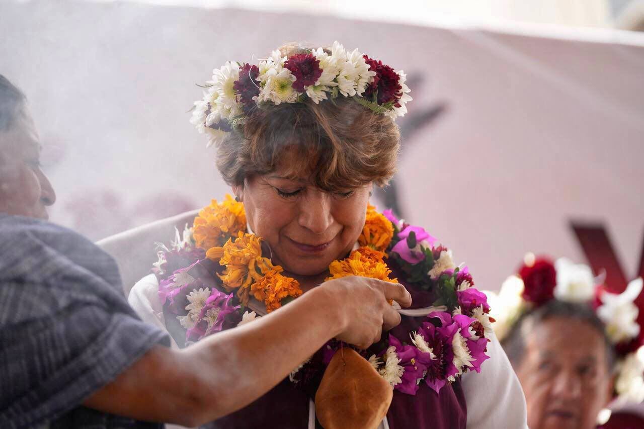 Delfina Gómez participó en una ceremonia ritual con habitantes de Ocuilan, por lo que agradeció el recibimiento que tuvo y prometió trabajar para dar solución a la necesidad de la población.