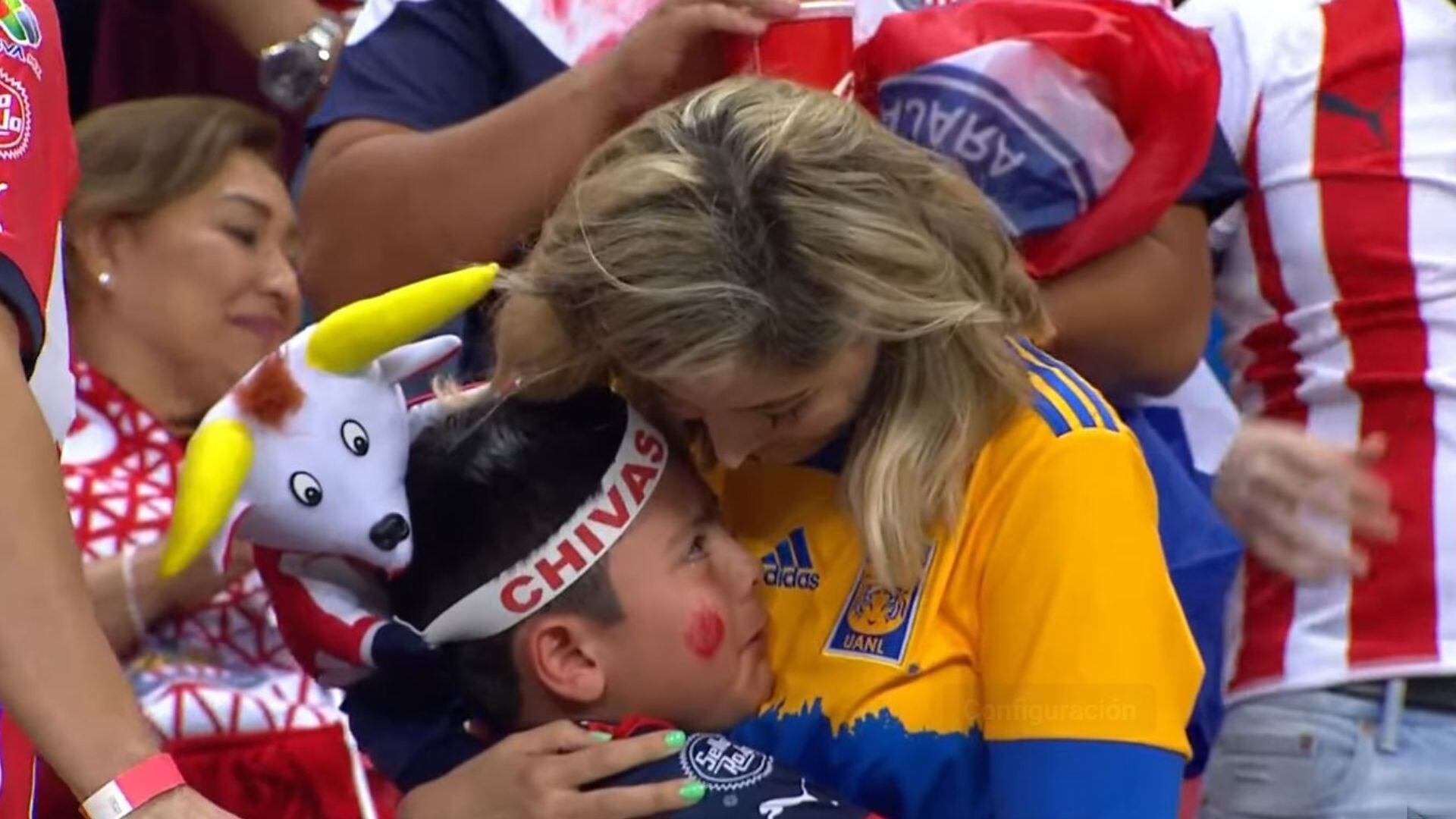 Así sucedió en el estadio Akron, en donde se pudo ver a una mamá, aficionada de Tigres, consolando a su hijo, seguidor de Chivas, luego de la derrota que sufrió el equipo en la final. La señora trata de hablar con él sobre lo sucedido, mientras se encuentra abrazándolo y limpiando sus lágrimas.