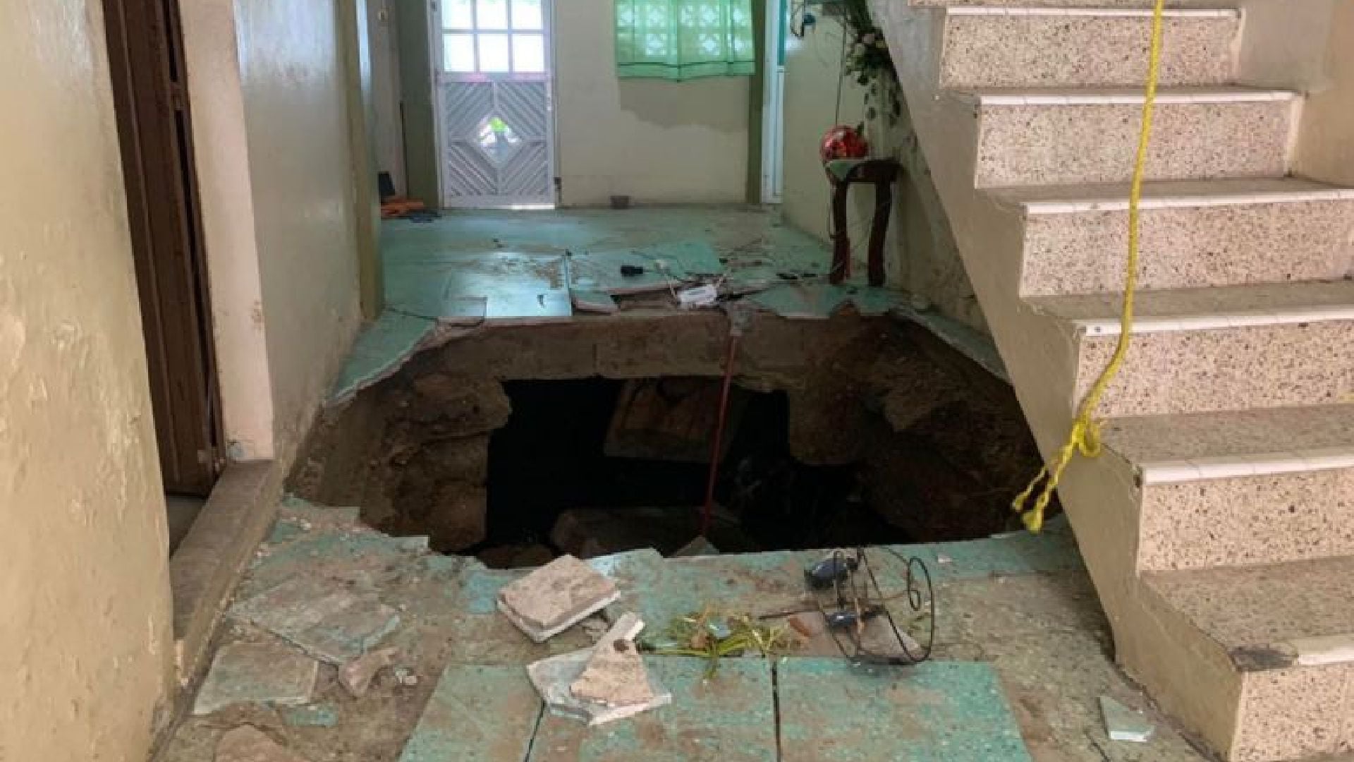 Y es que desde el pasado 13 de mayo, cuando se registró una fuerte tormenta eléctrica, colapsó una parte del suelo al interior de la vivienda, ubicada sobre la calle Adolfo López Mateos, de la colonia Agraria.