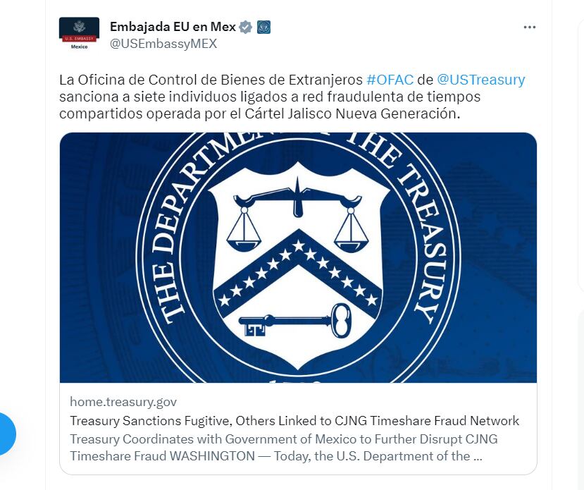Incluso, el Departamento del Tesoro de los Estados Unidos sancionó a otras ocho empresas mexicanas vinculadas a la organización de Nemesio Oseguera Cervantes, alias El Mencho, líder del CJNG, por estafar y cometen fraudes a turistas y residentes que visitan Puerto Vallarta y Guadalajara, principalmente, a ciudadanos estadounidenses.