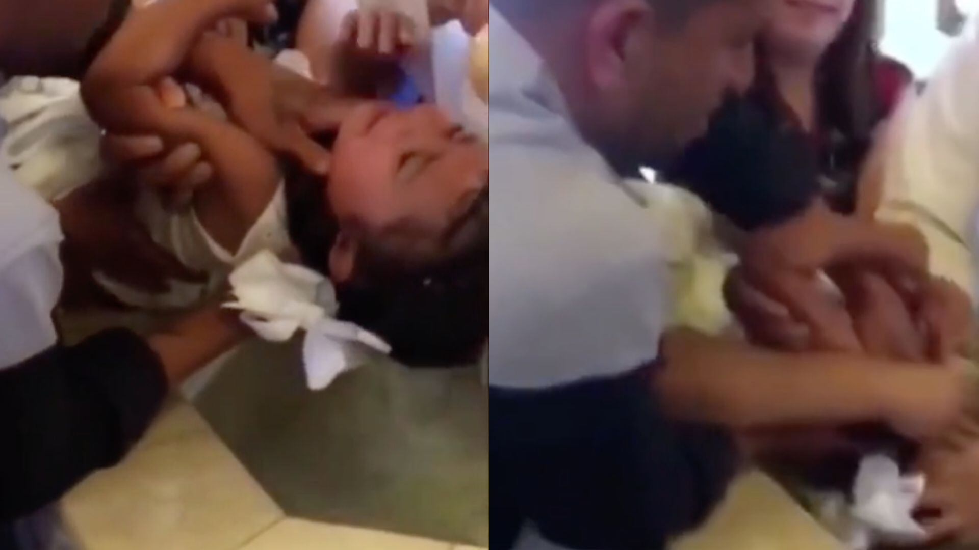 Así, mientras el padre estaba echándole un poco de agua a la cabeza del infante, de pronto el niño empezó a llorar y, al molestarse, se escucha como dice: “put*, put*”.