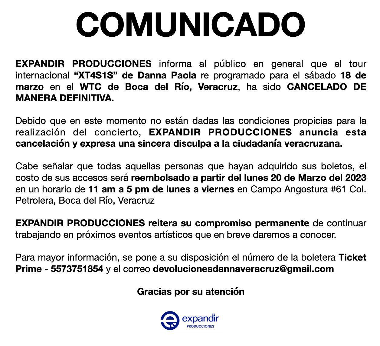 Uno de los espectáculos que pospuso fue el que se llevaría a cabo en el World Trade Center de Boca del Río, Veracruz. Este concierto estaba programado originalmente para el 22 de octubre de 2022, pero se pasó el 18 de marzo de 2023; sin embargo, a finales de febrero fue cancelado.