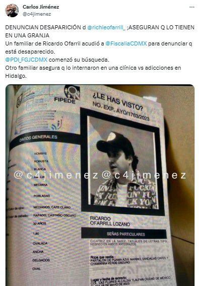 En medio de la polémica por la presunta desaparición del comediante Richie O’Farril, la Secretaría de Seguridad Ciudadana (SSC) de la Ciudad de México compartió un comunicado para dar claridad en el caso.