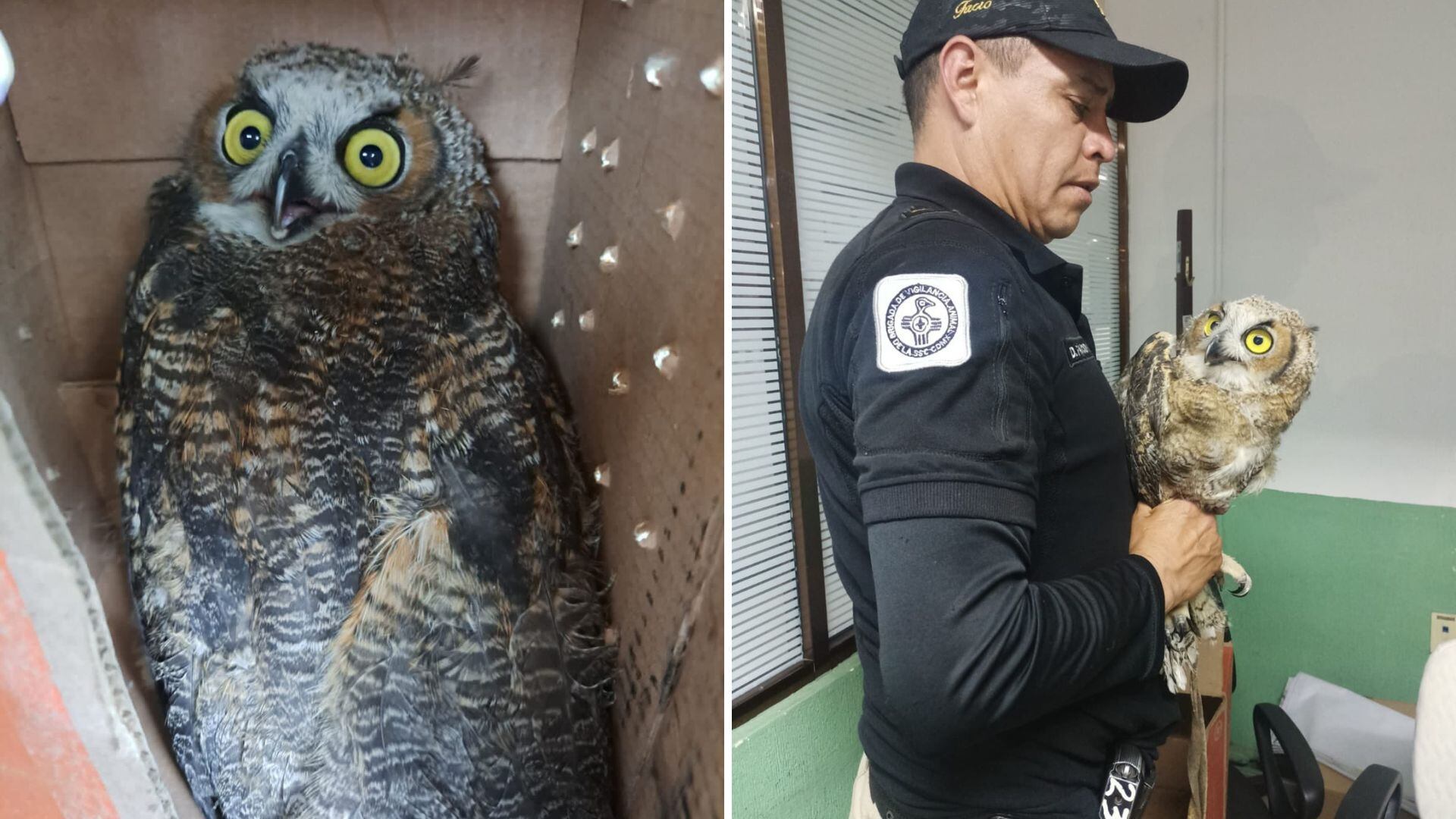 Elementos de la Secretaria de Seguridad Ciudadana (SSC) de la Ciudad de México, junto con integrantes de la Brigada de Vigilancia Animal, aseguraron este jueves 8 de junio un búho cornudo en las calles de la alcaldía de Azcapotzalco, en la Ciudad de México.
