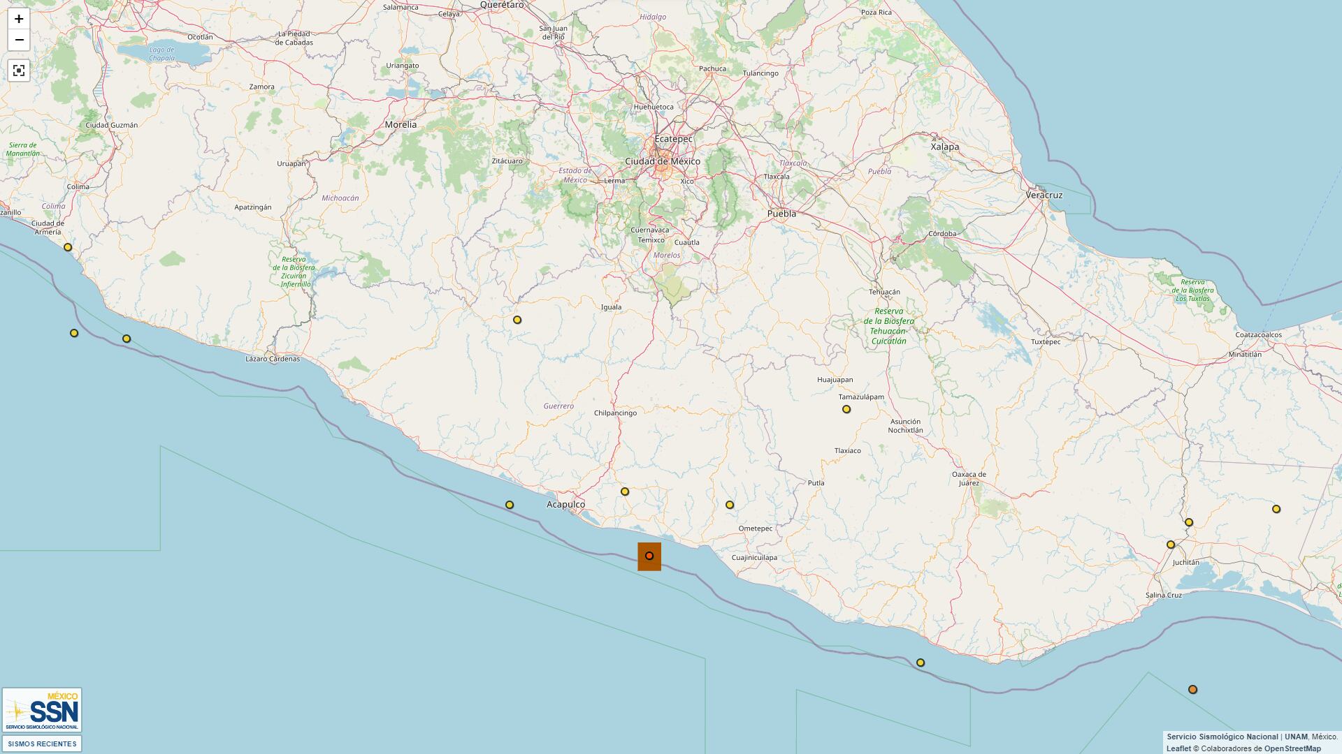 El Servicio Sismológico Nacional (SSN) registró un sismo de magnitud 3.6 con epicentro a 38 km al sureste de San Marcos, Guerrero, en punto de las 04:51 horas.