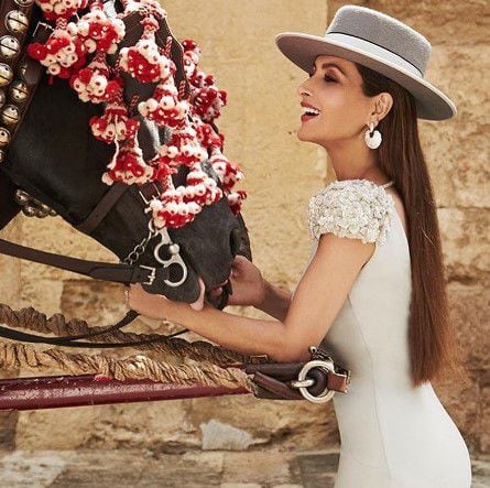 En las postales se puede apreciar al Sol de México con un look elegante y sombrío compuesto por un pantalón, una camisa y una gabardina negra, mientras que Paloma Cuevas deslumbró con un vestido del mismo color cuyas ondas seguían su caminar y las transparencias con encaje y destellos se robaron las miradas.
