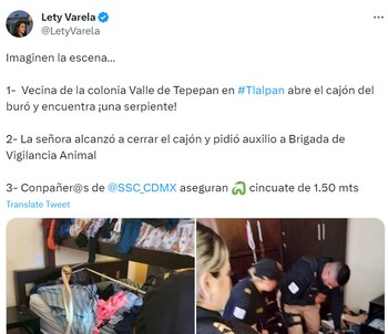 De acuerdo con la cuenta de Lety Varela, titular de la Brigada de Vigilancia Animal (BVA) de la Secretaría de Seguridad Ciudadana de la Ciudad de México (SCCDMX), el caso fue reportado a las autoridades correspondientes, quienes acudieron al domicilio para resguardar al animal.