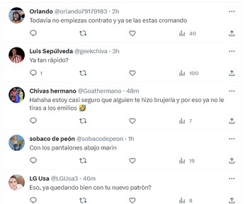 Algunos de los comentarios expresaron: “¿Ya tan rápido?”, “Todavía no empiezas contrato y ya se las estás cromando”, y “¿No que hasta enero? ¿O ya estás en la nómina?”, así como “Eso, ya quedando bien con tu nuevo patrón?”, “Hahaha estoy casi seguro que alguien te hizo brujería y por eso ya no le tiras a los Emilios”.