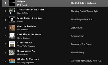 Este ecléctico playlist, que lanzó en el pasado eclipse del año 2017, puede volver a escucharse. Este listado de canciones, las cuales son consideradas clásicos, tiene una duración total de tres horas y 45 minutos y abarca una variedad de géneros musicales que van desde el rock hasta la música clásica y la electrónica.