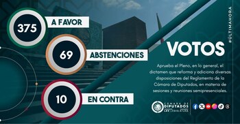 El pasado 17 de octubre, con 375 votos a favor, 69 en contra y 10 abstenciones, el Pleno de la Cámara de Diputados aprobó el dictamen que reforma y adiciona diversas disposiciones del reglamento, en materia de sesiones y reuniones semipresenciales.