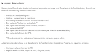 El proceso comienza con la entrega de un Currículum Vitae actualizado y una Carta de Exposición de Motivos al Departamento de Reclutamiento y Selección de Personal Docente. En esta carta, los aspirantes deben indicar tres asignaturas de interés y su horario disponible para impartir clases.