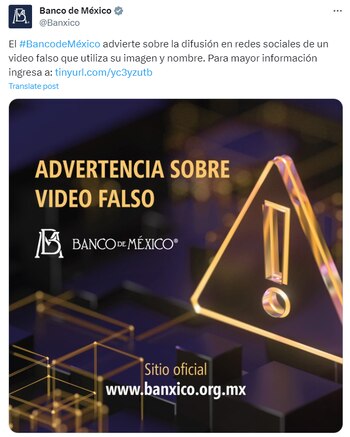 Banxico desmintió rotundamente cualquier información contenida en estos videos y alertó al público a ignorar su contenido para prevenir posibles fraudes.