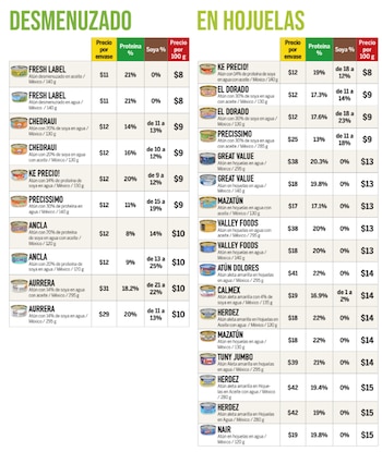 - Tuny Gourmet: disponible en aceite con agua por 34 pesos.