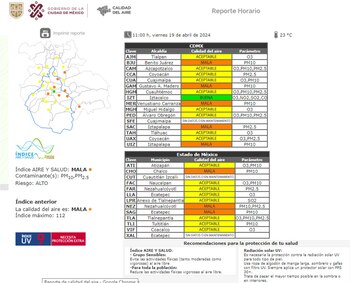 El reporte del 19 de abril, emitido a las 10:00 horas, destacó la importancia de tomar en cuenta la calidad del aire antes de emprender cualquier actividad al aire libre.