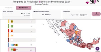 Con corte a las 22:40 horas, en la Cámara de Diputados, Morena lleva ventaja inicial en 244 Distritos electorales, mientras que la oposición lleva 53 distritos, tres más para Movimiento Ciudadano.