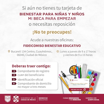 - Visita a las oficinas del Fibien (opción presencial): de acuerdo a Fideicomiso Bienestar Educativo CDMX (Fibien) requiere una visita presencial a sus oficinas, ubicadas en calle Bucareli 134, colonia Centro, alcaldía Cuauhtémoc, Ciudad de México. Verifica los horarios de atención y asegúrate de llevar copias físicas de los documentos requeridos.