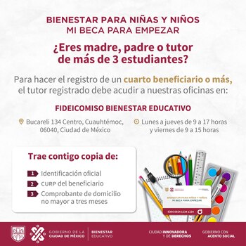 - Documentación requerida: para iniciar el registro, asegúrate de tener los siguientes documentos del cuarto estudiante: * Clave Única de Registro de Población (CURP) * Identificación oficial vigente del estudiante (acta de nacimiento si es menor de edad) * Comprobante de domicilio reciente (no mayor a tres meses) a nombre del solicitante.