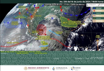 Por otro lado, el Meteorológico Nacional también alertó por otra posible zona de inestabilidad al este de la península de Florida, Estados Unidos, la cual al momento tiene 30 por ciento de probabilidades de convertirse en ciclón en los siguientes siete días. También monitorea una zona de baja presión al sur de las costas de Chiapas y Guatemala con 20 por ciento de probabilidad de desarrollo ciclónico en los próximos siete días.