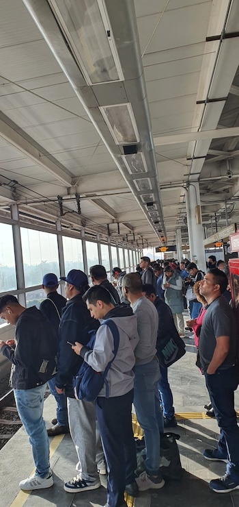 Pasajeros del Metro de la CDMX reportan problemas en la Línea 3. El tiempo de espera para poder subir a un convoy es largo.