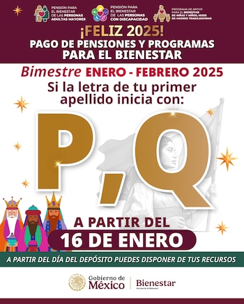 De acuerdo al calendario oficial de la Secretaría del Bienestar, este martes 16 de enero corresponde el pago a las personas cuyo primer apellido inicia con las letras P y Q. Los beneficiarios pueden retirar sus recursos en cualquier momento, ya que estos permanecerán disponibles en su cuenta hasta ser utilizados.