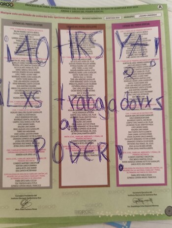 Sin embargo, durante el proceso, finalmente consumado este 1 de junio, muchos votantes la recibieron con escepticismo o abierta oposición, y decidieron manifestarlo por escrito en la boleta electoral.