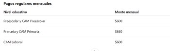 Para otros niveles educativos como preescolar, primaria y CAM Laboral, el apoyo se mantiene, aunque sin la necesidad de una tarjeta adicional.