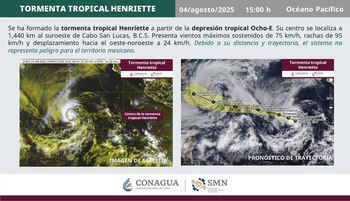 Los pronósticos del Meteorológico Nacional indican que Henriette se mantendrá activa hasta el próximo sábado 9 de agosto, sin embargo, no alcanzará la categoría de huracán.