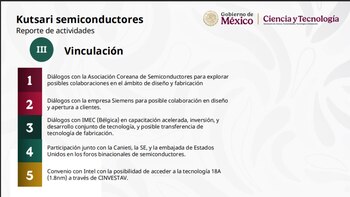 Entre los objetivos para 2025 destaca la creación de la Unidad de Negocio Kutsari y el diseño de un microprocesador de aplicación universal, además de una capacitación intensiva para diseñadores de circuitos integrados, piezas clave para la manufactura avanzada en la industria nacional.