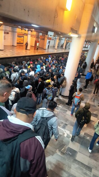 Usuarios reportan avance lento y retrasos en en varias estaciones de la Línea 3: en Copilco, los trenes llevan más de 10 minutos sin pasar; en Centro Médico, algunos pasajeros esperan hasta 25 minutos sin poder abordar; en Guerrero, el tren permanece 20 minutos sin avanzar, y el andén de Zapata está lleno en dirección a Universidad.
