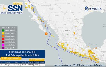 El SSN reporta que en la primera semana de septiembre se registraron 2343 sismos