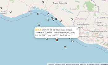 El estado de Chiapas presentó 22 eventos sísmicos este martes. Los dos más intensos fueron de magnitud 3.9 y 4.0.