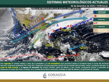 En el centro, oriente, sur y sureste del territorio nacional, incluidos el valle de México y la península de Yucatán, también se esperan precipitaciones debido a la interacción de un canal de baja presión en el sureste con la humedad de los tres cuerpos de agua mencionados.