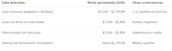 Sanciones relacionadas con fallas en las luces