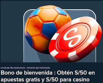 El grupo internacional de apuestas deportivas indica que los nuevos jugadores peruanos de Stake pueden reclamar un bono de bienvenida de S/50 en apuesta gratis y S/50 para casino. Para acceder a la gratificación, se debe abrir una cuenta y realizar una recarga mínima de S/100.