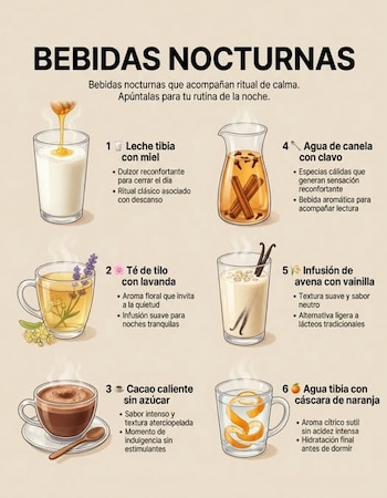 Las bebidas nocturnas naturales destacan por su capacidad para inducir calma sin recurrir a estimulantes ni fármacos. Prepararlas y consumirlas de manera consciente ayuda al organismo a reconocer que es momento de bajar el ritmo y prepararse para dormir.
