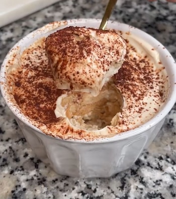 Esta versión no lleva café, licor, crema ni mascarpone, elementos tradicionales del tiramisú clásico, sino que apuesta por productos sencillos que suelen encontrarse en cualquier hogar o tienda de abarrotes, como yogurt natural, galletas Marías y cocoa en polvo.