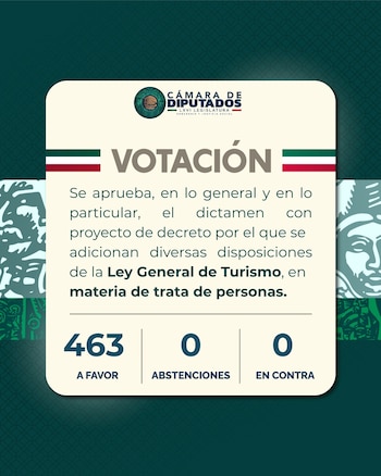 El dictamen, avalado por 463 votos, ordena a la Secretaría de Turismo diseñar y ejecutar códigos de conducta, capacitaciones y programas enfocados en la prevención de la trata de personas. Estos lineamientos buscan que México se alinee con la política nacional y las autoridades especializadas en el tema.