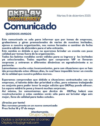 De acuerdo con los organizadores, el evento no podrá realizarse en las fechas previstas debido a “temas de empresas, grabaciones y giras promocionales de varios de nuestros invitados”, una explicación que no convenció a buena parte del público, especialmente porque la convención informó que el encuentro se reprogramaría para el 16 y 17 de mayo de 2026, sin ofrecer la opción de devolver el dinero a quienes ya habían pagado.