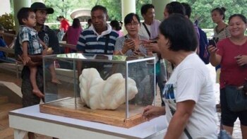 La guardó como un "amuleto de buena suerte" en su casa hecha de madera. Pero un incendio hizo que su propiedad quedara en cenizas y tuviera que buscar otra casa. El pescador la entregó a una muy estupefacta oficina de turismo en Puerto Princesa que verificó que había salido de una ostra gigante.