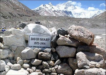 Al lado de "Botas verdes" estuvieron los restos de David Sharp, un caso que ha escandalizado e indignado a la comunidad alpinista. El 15 de mayo del 2006 Sharp realizaba su tercer ataque a la cumbre. Pagó sólo 6.200 dólares por viajar con Asian Trekking hasta el campamento base y desde allí realizó varias acometidas en solitario. Al parecer iba sin oxígeno, sin sherpas, sin guías, sin radio, sin medicamentos o cualquier otro soporte vital. Subía con su equipo básico, no se sabe si con la intención de batir algún récord.