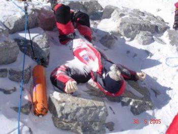 Hay más de 200 cadáveres en el Everest de los cuales 150 nunca se han encontrado. Además, las rutas de acceso a la cima más transitadas están plagadas de cuerpos (más de 40) que han quedado en el punto exacto donde murieron. Muchos de ellos no han podido ser reconocidos y han sido bautizados con nombres y son utilizados como puntos de referencia.