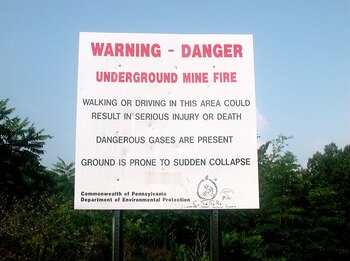 Durante años el incendio pasó desapercibido, pero a fines de los años '70 empezaron a hacerse evidentes los riesgos que este presentaba, debido a la gran cantidad de gases tóxicos que surgían del subsuelo y de los socavones que aparecían en el terreno y que hacían peligrar la integridad de las construcciones de la localidad.