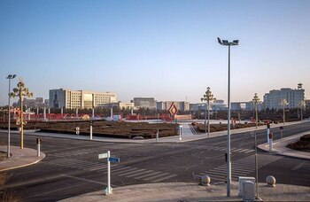Ordos Kangbashi se encuentra en la zona noroeste de Mongolia Interior. La ciudad fue construida a gran velocidad en 2001, inaugurada en el año 2003 en una gran ceremonia.