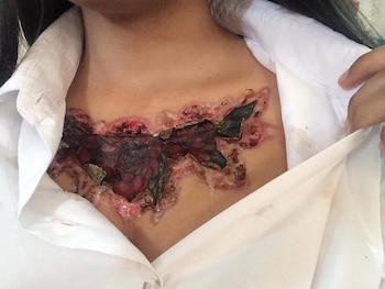 El tratamiento infectó y pudrió su piel, incluso un pus pestilente salía de la cicatriz y la chica no podía dormir a causa de los dolores.