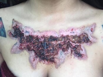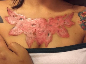 Decidió tatuarse enormes flores en el pecho. El tatuaje era perfecto para ella, pero luego de tratar de quitarlo vio que algo estaba saliendo mal