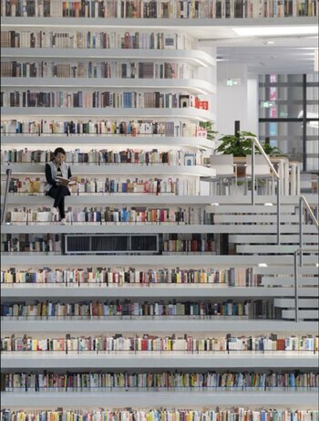 La compañía holandesa MVRDV, junto con el Instituto de Planificación y Diseño Urbano de Tianjin (TUPDI), diseñó la futurista Biblioteca Tianjin Binhai como parte de proyecto que proporcione un distrito cultural para la ciudad. Sus colección de libros tendrá aproximadamente 1.2 millones de ejemplares de todo el mundo y promete ser una de los edificios más famosos del mundo.