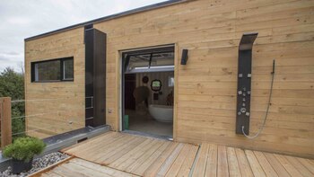 Su diseño permite ver que por fuera, los contenedores están cubiertos con madera de pino y sirvieron de estructura del hogar. Las imágenes de la exclusiva obra de arte diseñada por esta canadiense.