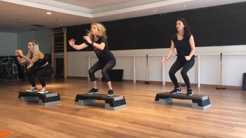 Ya llega el verano y ella nos ayuda a ponernos en forma con esta serie de ejercicios muy dinámicos donde pones en movimiento varios grupos musculares a la vez. En esta clase trabajamos con steps combinando fuerza y velocidad. Sentadillas tradicionales más subidas y bajadas al step junto a flexiones para fortalecer brazos.